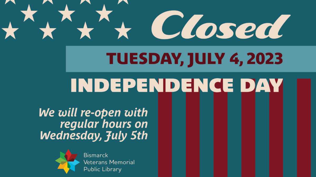 Welcome to the monthly Library Connections e-newsletter! Keep up on everything that's happening at Bismarck Veterans Memorial Public Library.