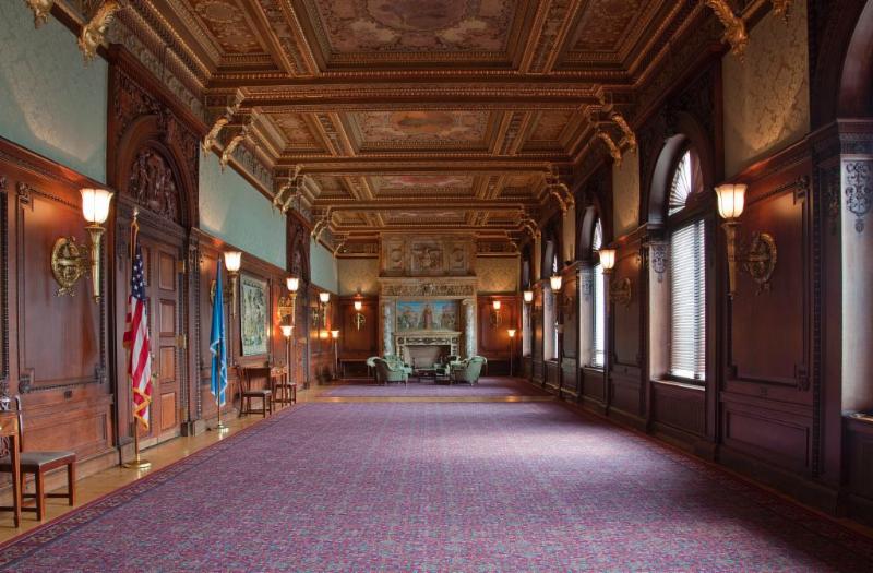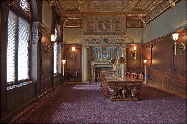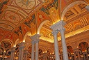 The Members of Congress Reading Room has ceiling panels featuring the seal and motto of States.