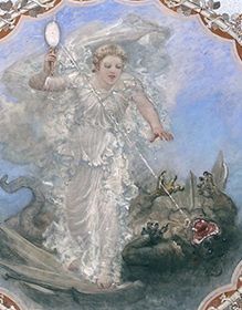 Small angels in the corners represent Physics, Metaphysics, Psychology and Theology.