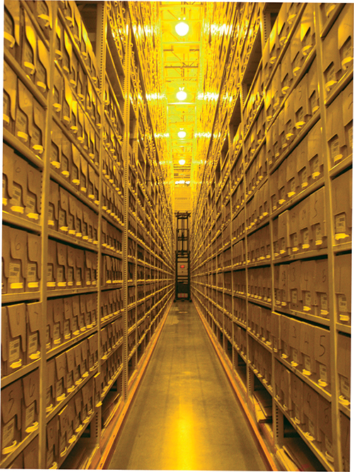 The Jefferson Building, with 104 miles of shelves, has three massive bronze doors at it Main Entrance representing Tradition, Printing, and Writing.