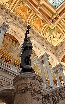 The Jefferson Building's East Corridor has vaulted ceiling panels representing the Life of Man, with quotation: