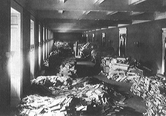 In 1851, the largest fire in the Library's history destroyed 35,000 books, about two-thirds of the Library's 55,000 books. President Fillmore and his Cabinet formed a bucket brigade to help extinguish the flames.