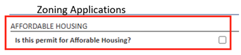Important: You must select the Affordable Housing checkbox to qualify for expedited review. Review (and re-review) times will not be shortened retroactively if this step is missed.