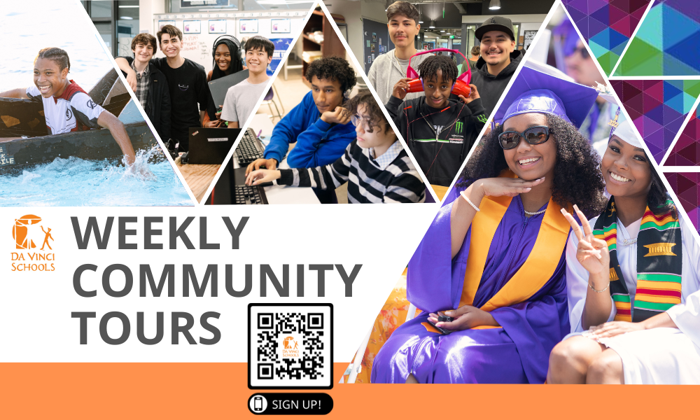 Did you know Da Vinci hosts Weekly Community Tours to learn more about the three high schools at Da Vinci's campus at 201 N. Douglas Street? These are student-led tours of Da Vinci Communications, Design and Science. See first-hand what Da Vinci has to offer, including small, safe and nurturing communities; college-prep and career learning simultaneously; hands-on project-based learning; career pathways; athletics, performing arts, clubs, and more!