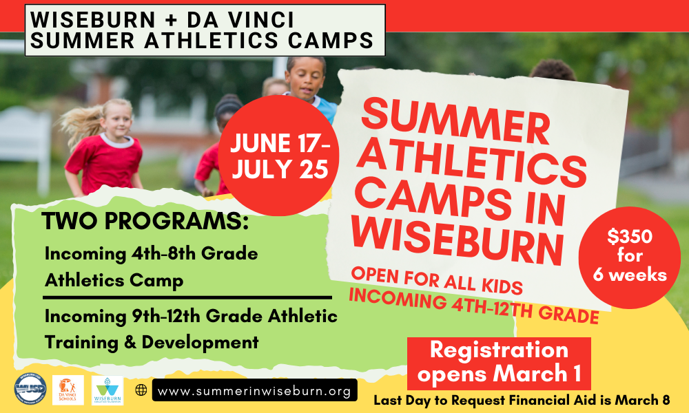Da Vinci also will be offering enrichment camps this summer, including Robotics, Art/Ceramics, Graphic Design, Board Games, Youth & Government Debate, and our first-ever Performing Arts camp. More information is forthcoming and will be available on March 1 at summerinwiseburn.org. All enrichment camps will be open for enrollment no later than March 15, 2024.