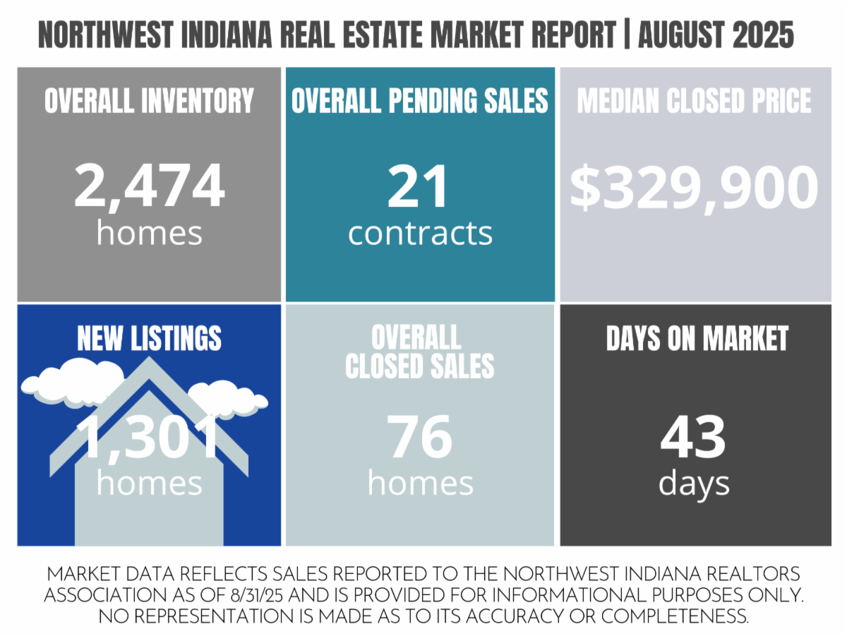 Here is a quick look at what is happening in the Northwest Indiana real estate market — and what it could mean for you. | | | | Northwest Indiana’s August housing market favored well-priced homes. Median list price stood at $339,900, with closed sales averaging 97.9% of list value. Nearly 70% of homes sold in under 30 days, while longer listings saw deeper concessions. At a median of 43 days on market, strategic pricing remained the key to strong results. | |