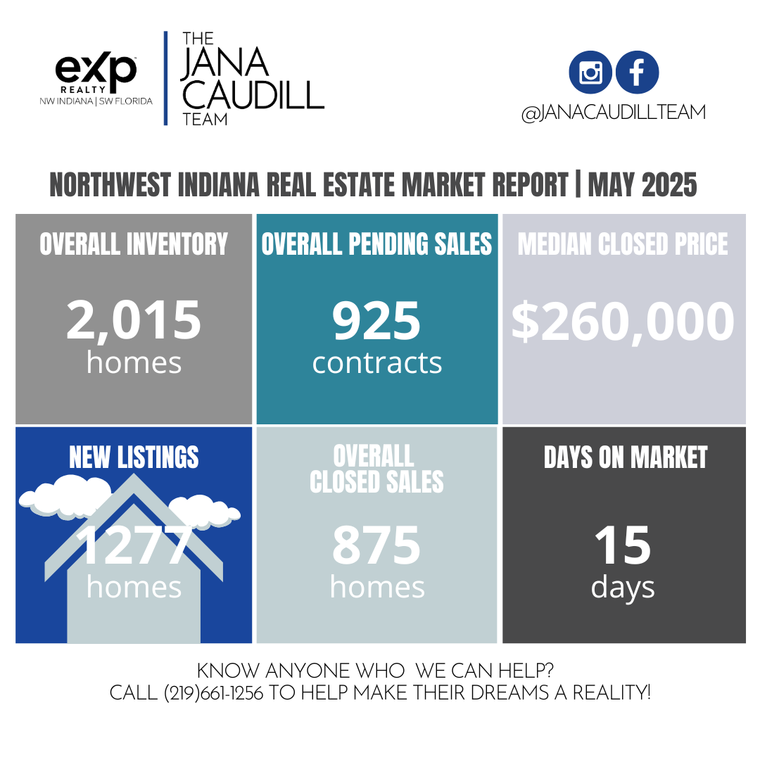 Here is a quick look at what is happening in the Northwest Indiana real estate market — and what it could mean for you. | | | | Northwest Indiana housing market shifts toward buyer-friendly conditions as active listings surge 22% year-over-year. May 2025 saw median prices rise 2% to $260,000 while pending contracts dropped 9%. Properties now average 15 days on market, up from 12 days last year, though strong closed sales (+7%) and stable sale-to-list ratios at 96.3% show well-priced homes still perform successfully.