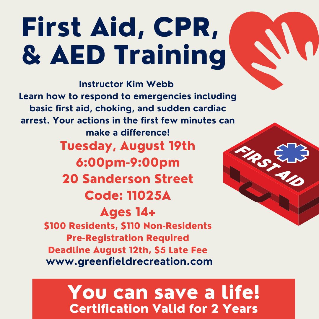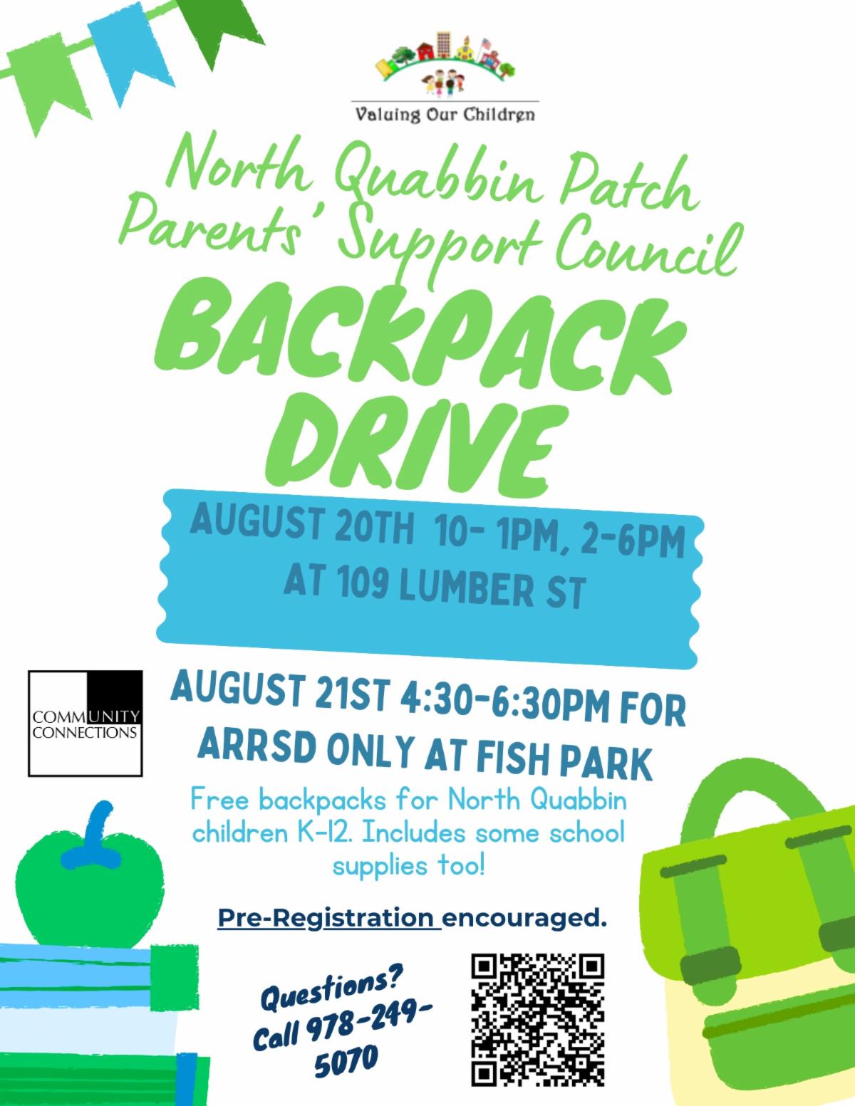 | | August 19 First Aid, CPR, & AED Training | | August 20 Splish Splash Froggy Bash | | August 20 & 21 North Quabbin Patch Parents' Support Council Backpack Drive | | August 21 Coffee & Canvas | |