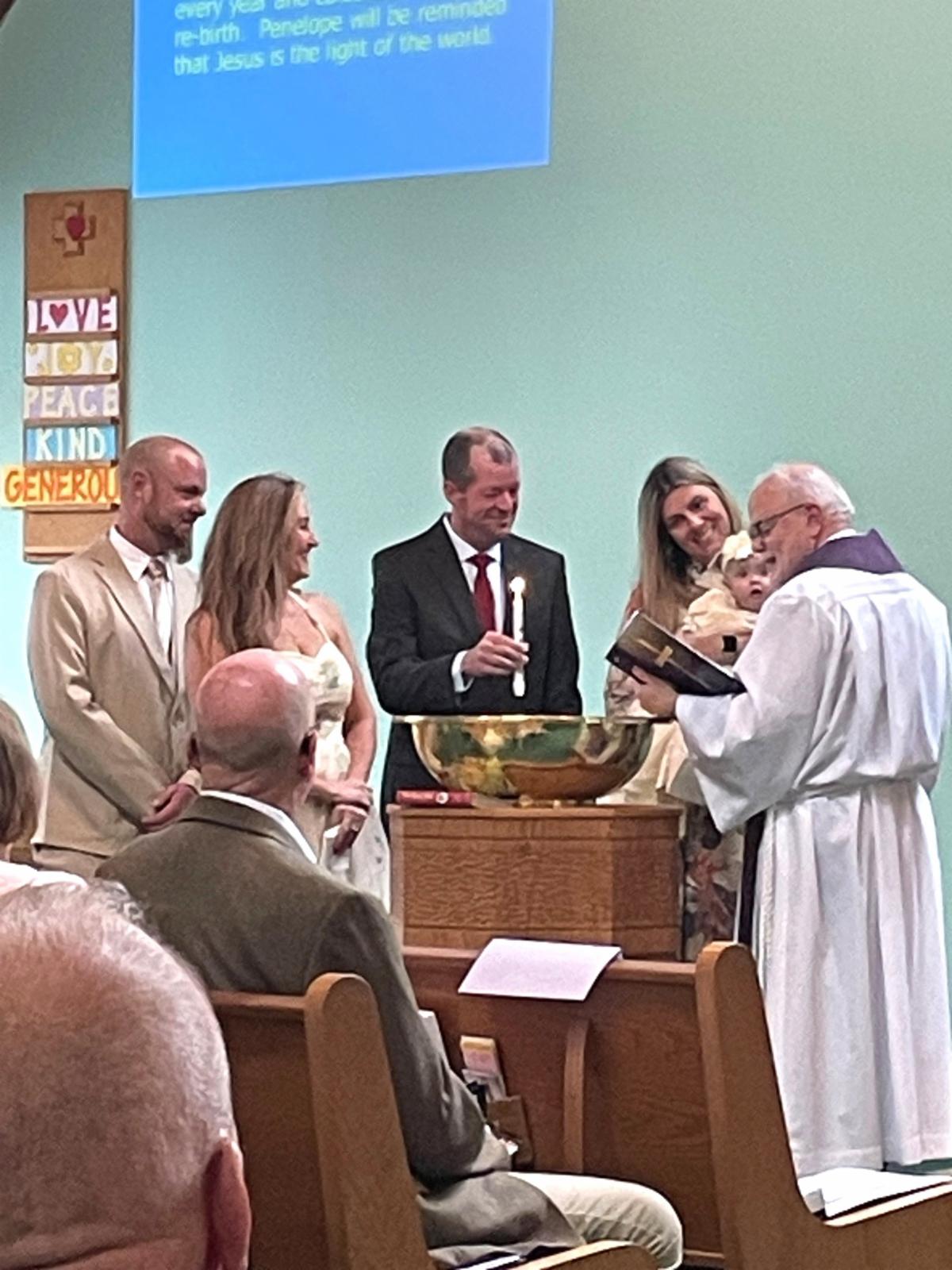 Penelope Rose Brown, daugther of Sherry and Joseph, was Baptized during the church service. Our congregation welcomed her and asked that God's blessing will always be with her.