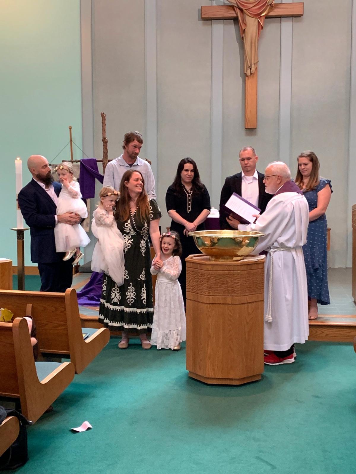Family, friends, and congregation members celebrated the Baptism of sisters Anastasia, Evelyn, and Magnolia Jennings. May God's blessings be on each of you!