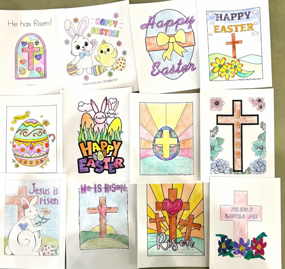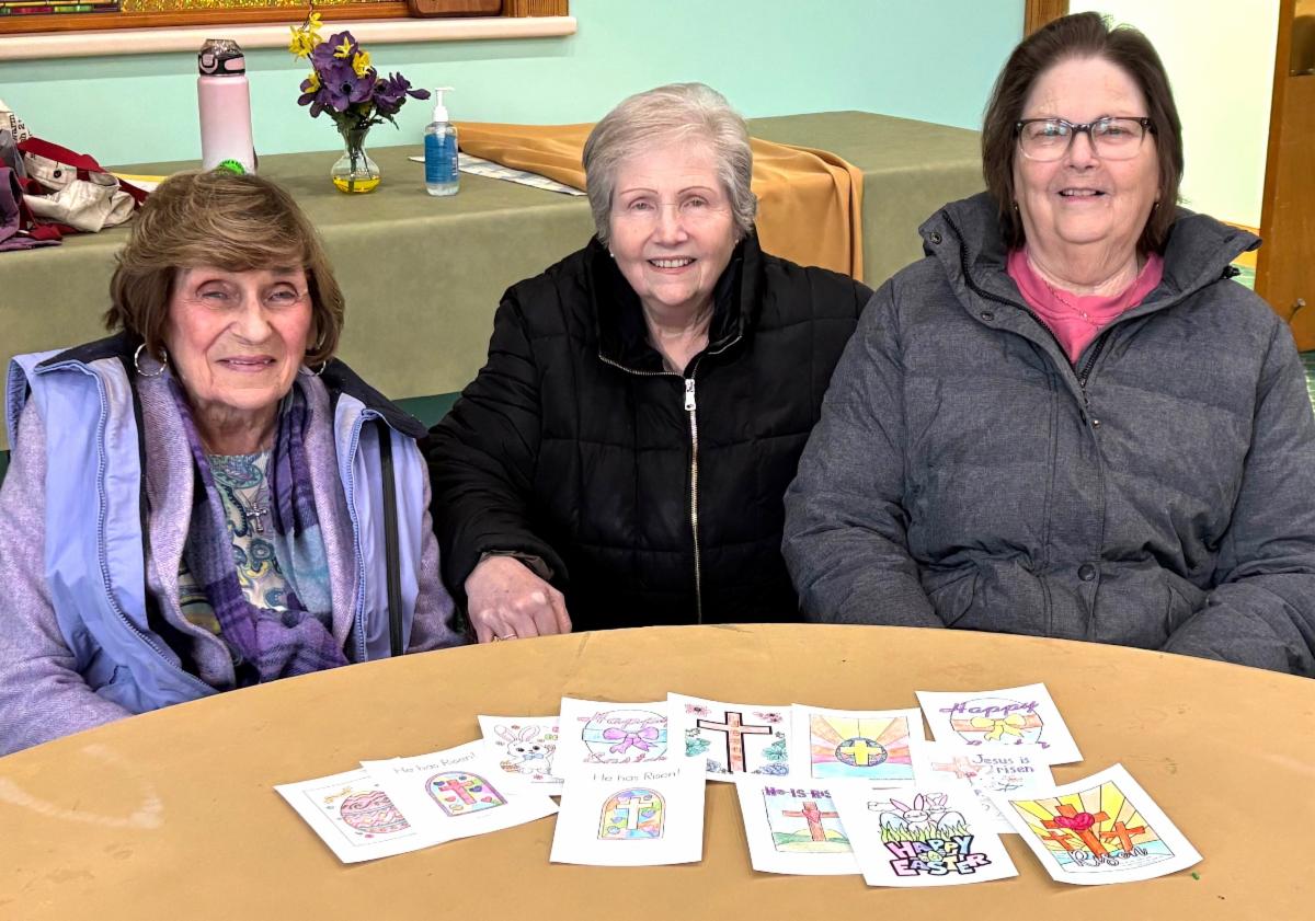 Our group was busy making Easter greeting cards for the Christian Caring Center. Shown are Carole Vernon, Sara King, and Nancy DiYenno along with some of the completed cards.