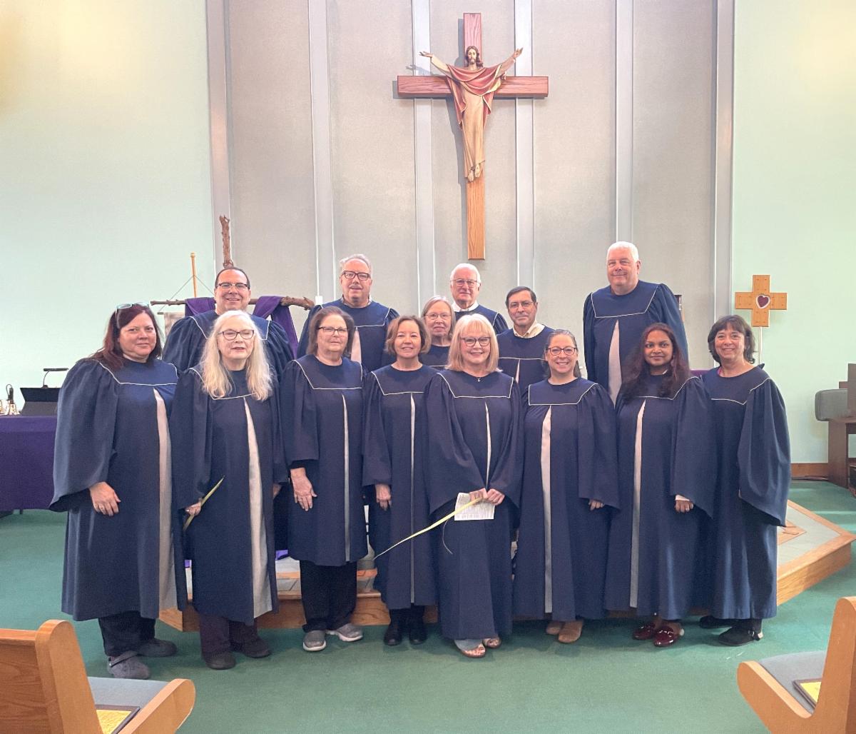 Both of our church choirs enhanced our Palm Sunday church service with singing and accompanying the hymns. The New Life Choir rolls expanded during the Lenten Season with the addition of several new members. They also wore their "special occasion" robes. The Celebration Ringers bells provided an extra lift to our hymns. Thank you both groups for your dedication and sharing your musical talents.