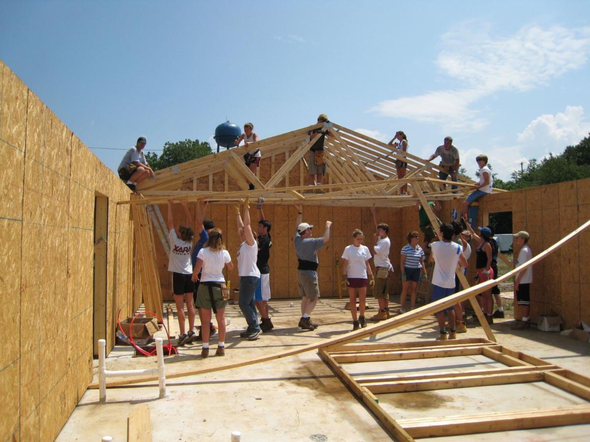 FDC barn raising and construction. (The one photo below has the date incorrect! It should be Saturday, May 17, 2003.)