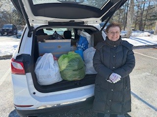 | | Photos of Sheri Perkins and her carload of our donated, warm winter clothing, ready to bring to the Christian Caring Center. There were other deliveries made by our group of volunteers throughout the course of our clothing drive. | | |