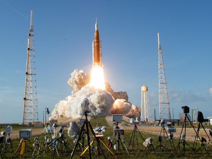 NASA’s SLS (Space Launch System) rocket lifted off from Launch Pad 39B at the agency’s Kennedy Space Center in Florida at 6:35 p.m. EDT Wednesday, sending four astronauts aboard the Orion spacecraft on a planned test flight around the Moon and back.