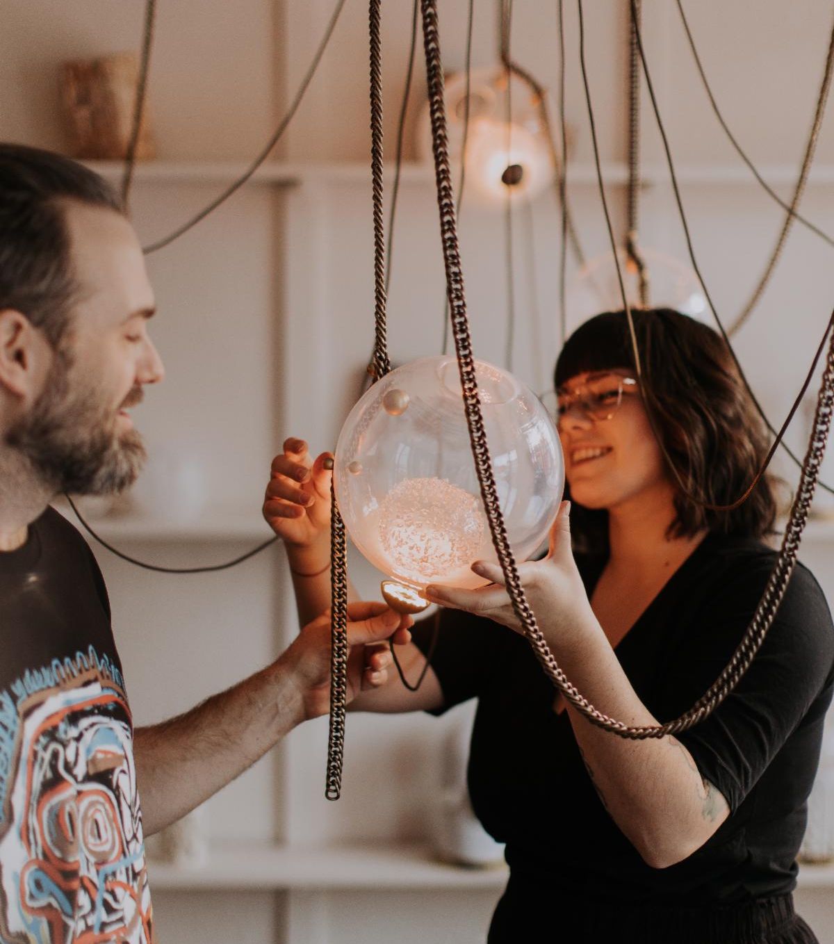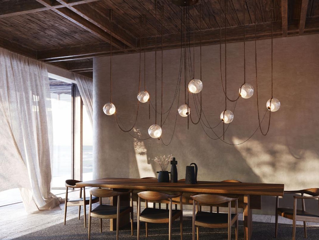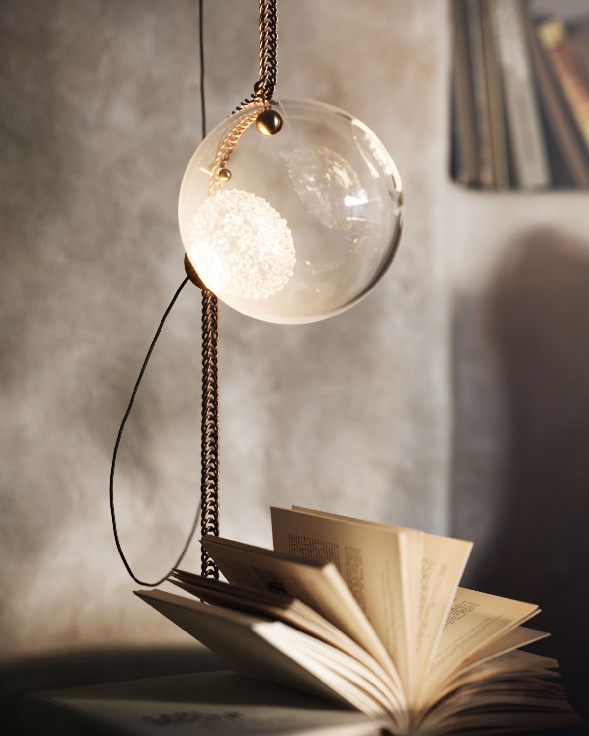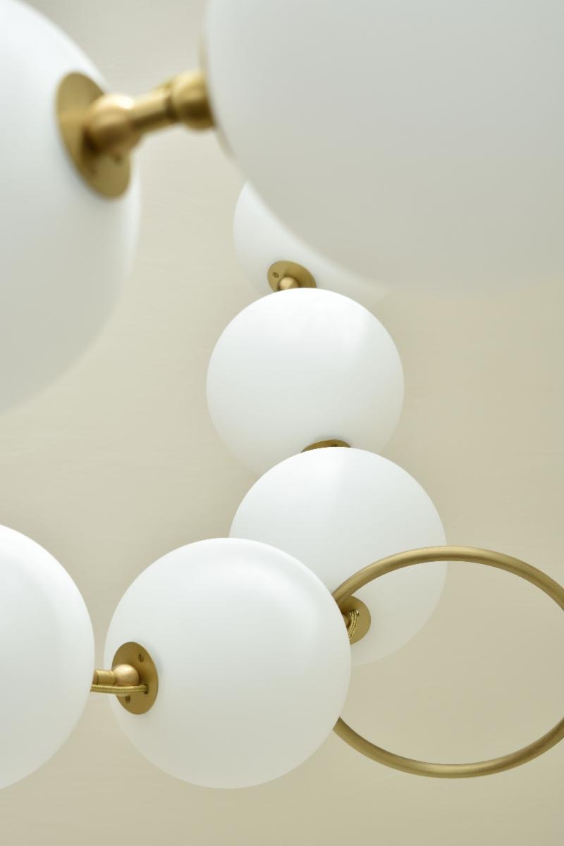 WHILE COCO PRESENTS A CLEAN AND SMOOTH, ELEGANT FINISH, INSPIRED BY THE PEARLS OF COCO CHANEL, COCO DE MER EXPLORES A FANTASY WHERE IMAGINARY DIVERS HAVE UNEARTHED THE CHANDELIER UNDER THE SEA . . . .METAPHORICAL MOLLUSCS AND SEAWEED HAVE CLUNG TO ITS SURFACES, BESTOWING COCO DE MER WITH A TEXTURED AND MYSTERIOUS APPEARANCE ONLY MOTHER NATURE CAN SCULPT SO WELL. SYMBOLICALLY STRUCK BY WAVES OF INSPIRATION, COCO DE MER ENCAPSULATES THE ESSENCE OF THE ORIGINAL COCO, WITH DELICATELY HAND TEXTURED GLASS GLOBES, AND CHAINS REMINISCENT OF SHIPWRECKS LOST AT SEA. |