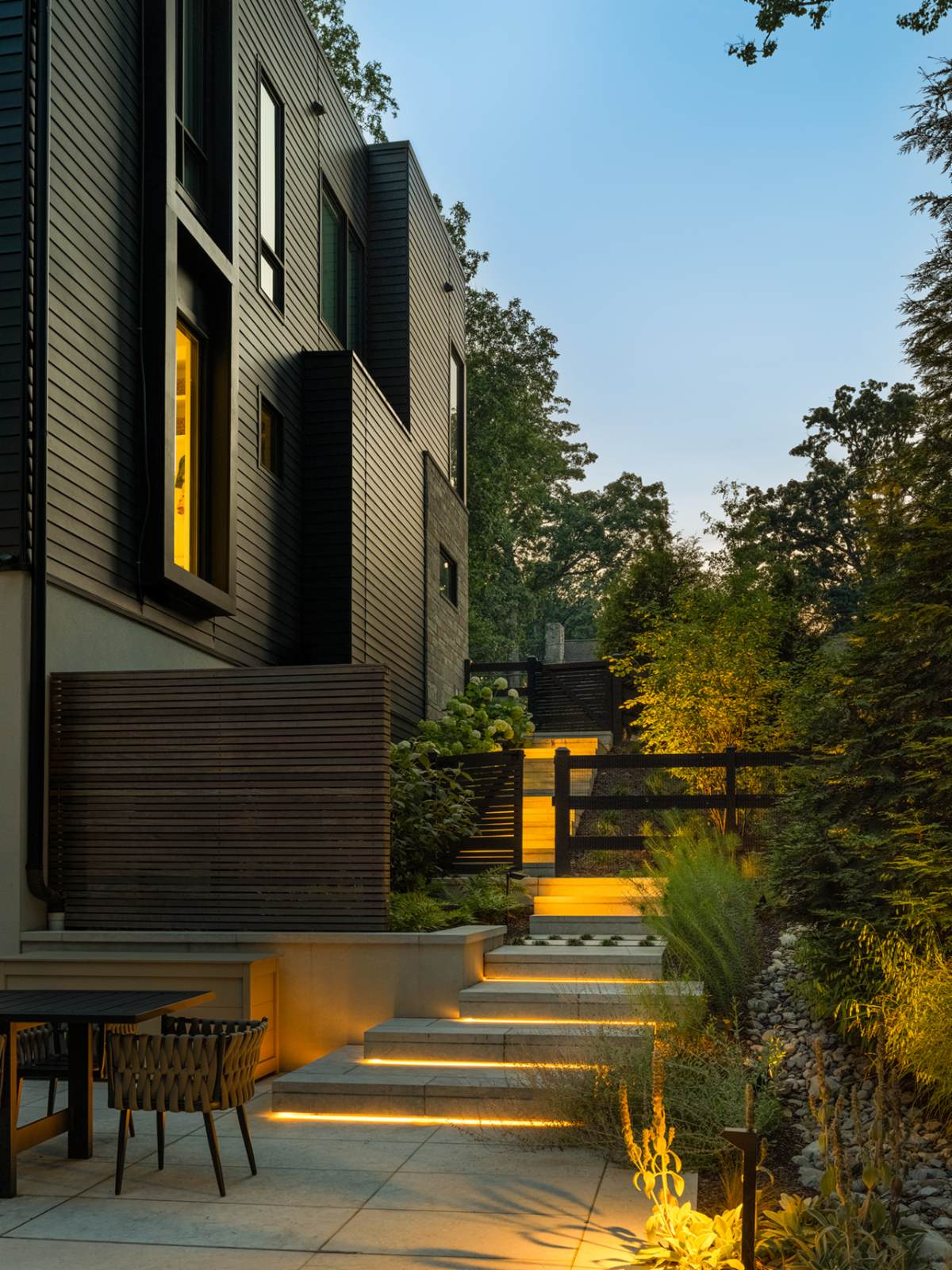 Outdoor Illumination has had the privilege of working with Richardson & Associates Landscape Architecture on many projects over the years, including this recent collaboration with Jordan Clough, LA, and Pimenta Stone. Together, we integrated linear lighting into the “floating” steps and patio—a detail that required precision and teamwork.