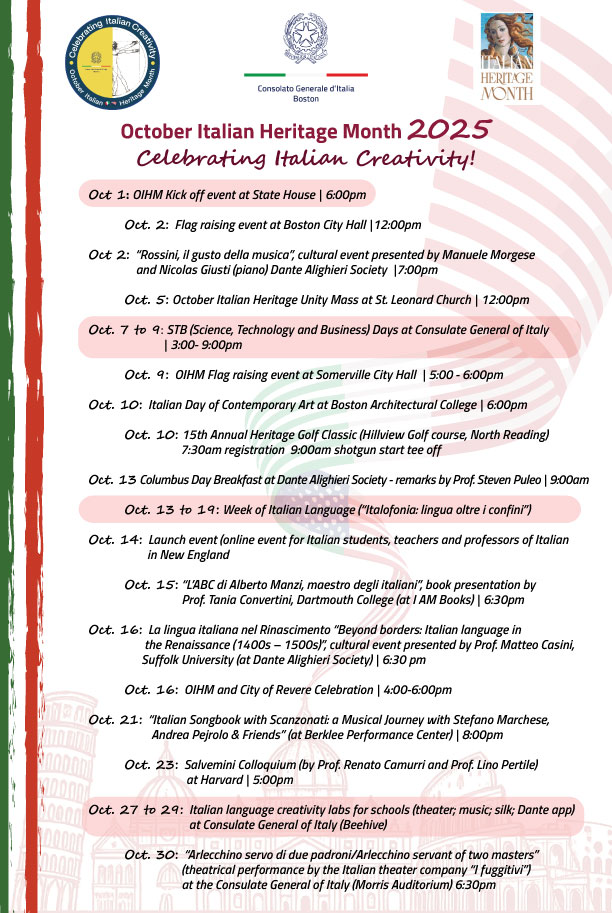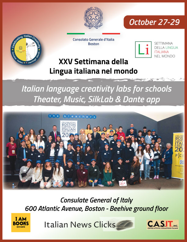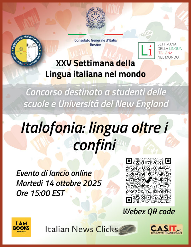 From October 13 to 19, 2025, the XXV edition of SLIM will be celebrated, dedicated to the theme “Italofonia: Language Beyond Borders”. The Consulate General of Italy in Boston invites Italian language students in Massachusetts, Maine, New Hampshire, Rhode Island, and Vermont to take part in a creative contest, with categories for all school levels and native speakers.