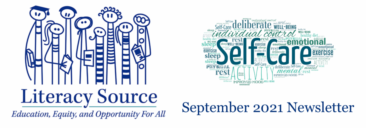 September is self-care month, and with so much uncertainty and change in our lives over the past eighteen months, it is more important than ever. We count ourselves lucky to have such a generous and thoughtful community of supporters at Literacy Source, but don't forget as well to take care of YOU! Here are some ways you can care for yourself this month (hint: one of them our fantastic volunteers are already doing!).