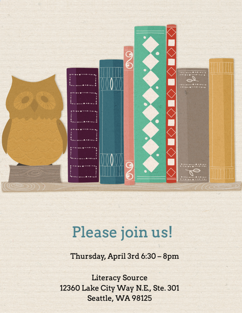 If you’re interested in volunteering at this event, please email analisaj@literacysource.org. We are looking for table hosts, greeters, those helping with registration, set-up, and tear-down, A/V, and more.