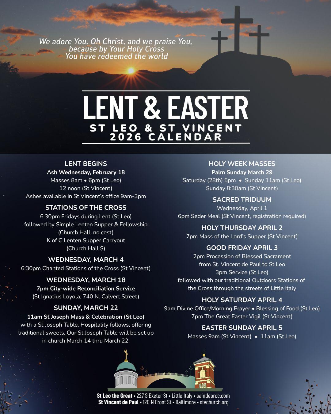 Lent & Easter 2026 Calendar - February 18 thru April 5