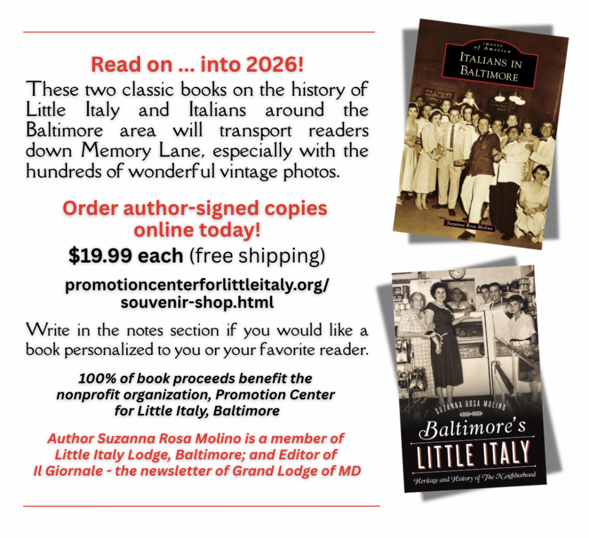 SuzannaMolino@PromotionCenterforLittleItaly.org.
