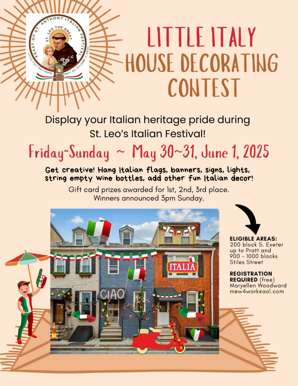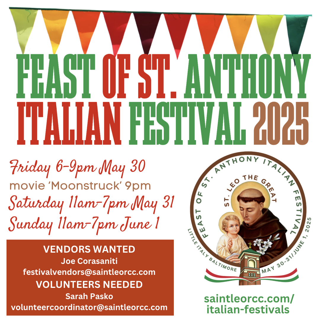 Fri/Sat/Sun, May 30-31 / June 1 - Italian Festival, including Bocce Tournament, Garage Sale, and Little Italy house-decorating contest!