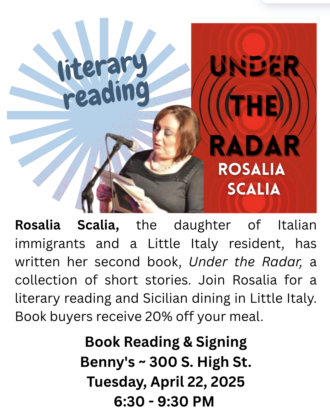 Tuesday, April 22 - Little Italy author's Book Reading & Signing