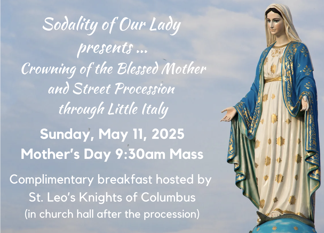 Sunday, May 11 - Mother's Day Mass, street procession, complimentary breakfast