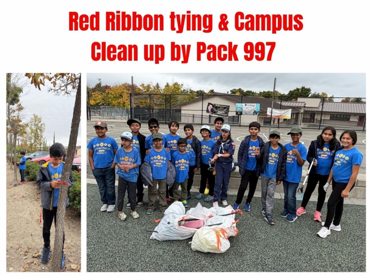 Live Oak students from Pack 997 also helped tie ribbons around the campus as a reminder to stay safe and care for both body and mind. They also took part in a campus clean-up around the Live Oak grounds demonstrating their commitment to community service.