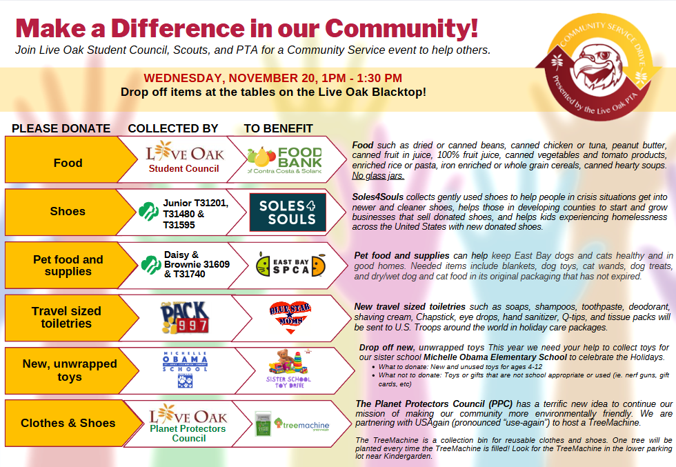 Community Service Drive - 1pm, LO Blacktop