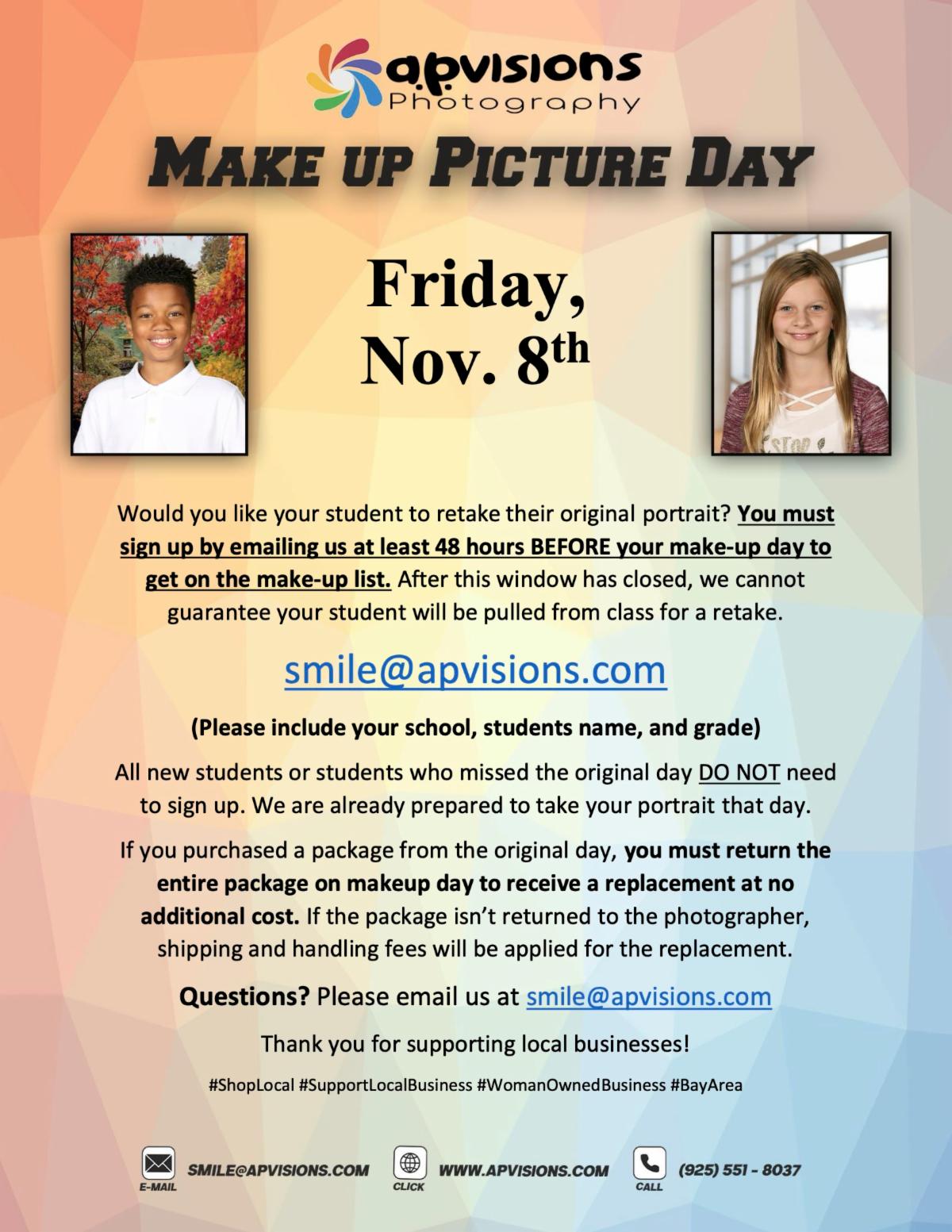 Nov 08 Make up picture day. Sign up to volunteer