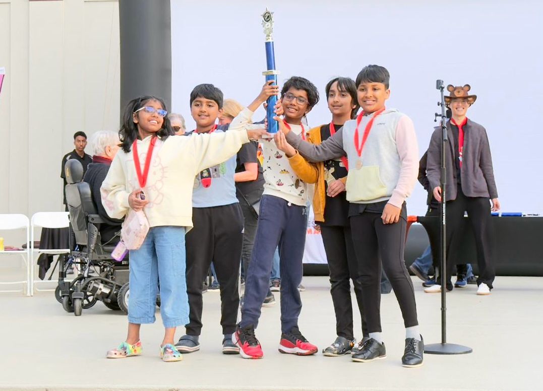 A talented team of five 4th-grade students from Live Oak Elementary showcased their creativity and problem-solving skills at the Destination Imagination 2024-25 Best of the Bay Tournament, where they competed against 100+ teams at the Elementary School level. The team earned the top spot (#1) in the Technical Challenge category at regionals, qualifying them for the state tournament. Last week, they traveled to Redlands, CA, for the state competition at the University of Redlands, where they achieved an impressive 2nd place finish. This success has secured their position to compete in the Global Finals in Kansas City, MO next month.
