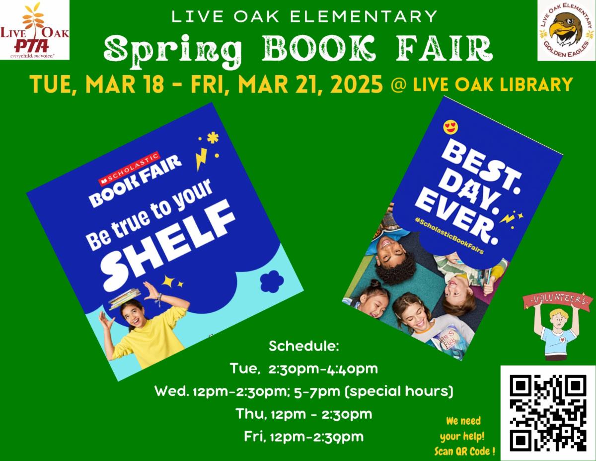 Thank you so much Live Oak for supporting the Spring Book Fair! As always, your purchases help the school build a better library for our children. Many thanks to Ms Legate and our chairs Vidhi Mody and Tori Dombroski for co-ordinating the event.