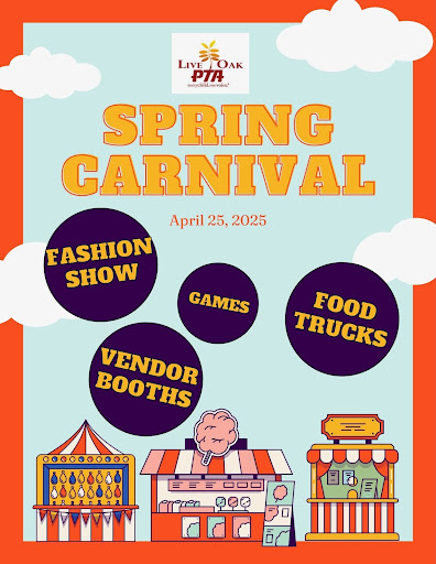 Live Oak PTA is proud to announce the 2025 Spring Carnival. We have loads of fun events in store for you.