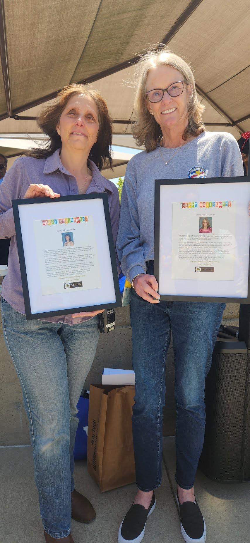 The Live Oak community, along with the PTA, would like to extend our heartfelt congratulations to Melanie Jensen and Sandi Moeller on their retirement.