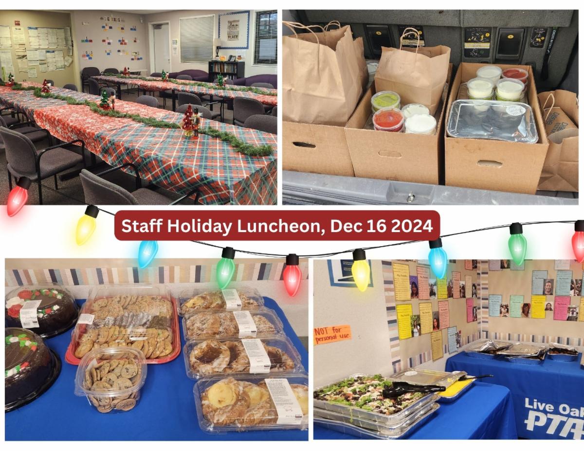 Thank you for your overwhelming support towards the Teachers and Staff Holiday luncheon! We were able to show our immense appreciation for our teachers and staff due to your contributions. Food was catered from 'The Kebab Shop' restaurant, and holiday treats were also on order. The staff lounge was decorated to usher in the holiday spirit. Thank you to all who volunteered to make this a successful celebration. PTA will be restocking the Teachers Lounge with the remaining funds.
