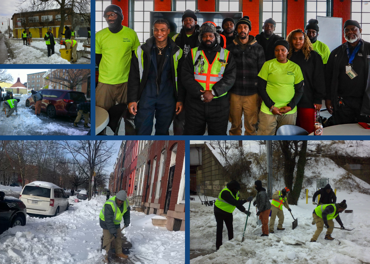 Project SERVE (Service, Empowerment, Revitalization, Validation, Employment training) is a Living Classrooms employment training program built to address recidivism rates and barriers to employment for returning citizens through a restorative justice model. Living Classrooms provides job training, wrap-around case management services, and access to resources so that Project SERVE members can be active participants in rebuilding their lives in the community. For the past few weeks our Project SERVE crews have been focused on helping community members impacted by the snowstorm and responding to 311 calls to clear snow and ice.