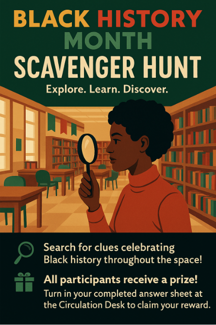 | | | Black History Month Scavenger Hunt | | Celebrate Black History Month with a fun scavenger hunt at the library all month long. Explore, learn, and earn a prize when you submit your completed answer sheet! | | Workshop Wednesday: Block-Printed Bookmarks | |