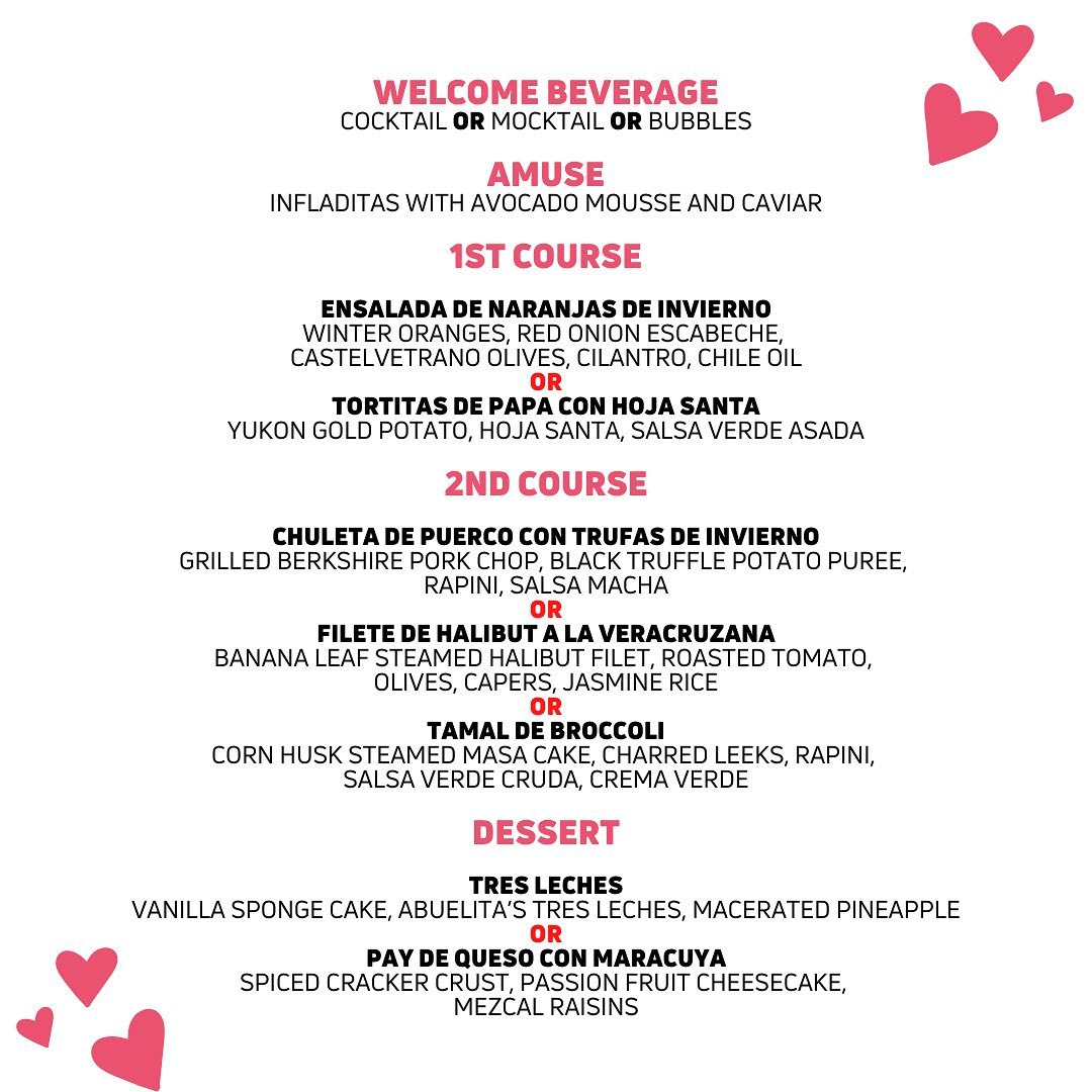 Celebrate this weekend of love with Muchas Gracias! Their kitchen is busy preparing a serious prix fixe menu for people who like to have fun with their persons! It all starts this weekend Friday, Feb 11th - Tuesday, Feb 15th. Find the menu below and reserve your table, here.