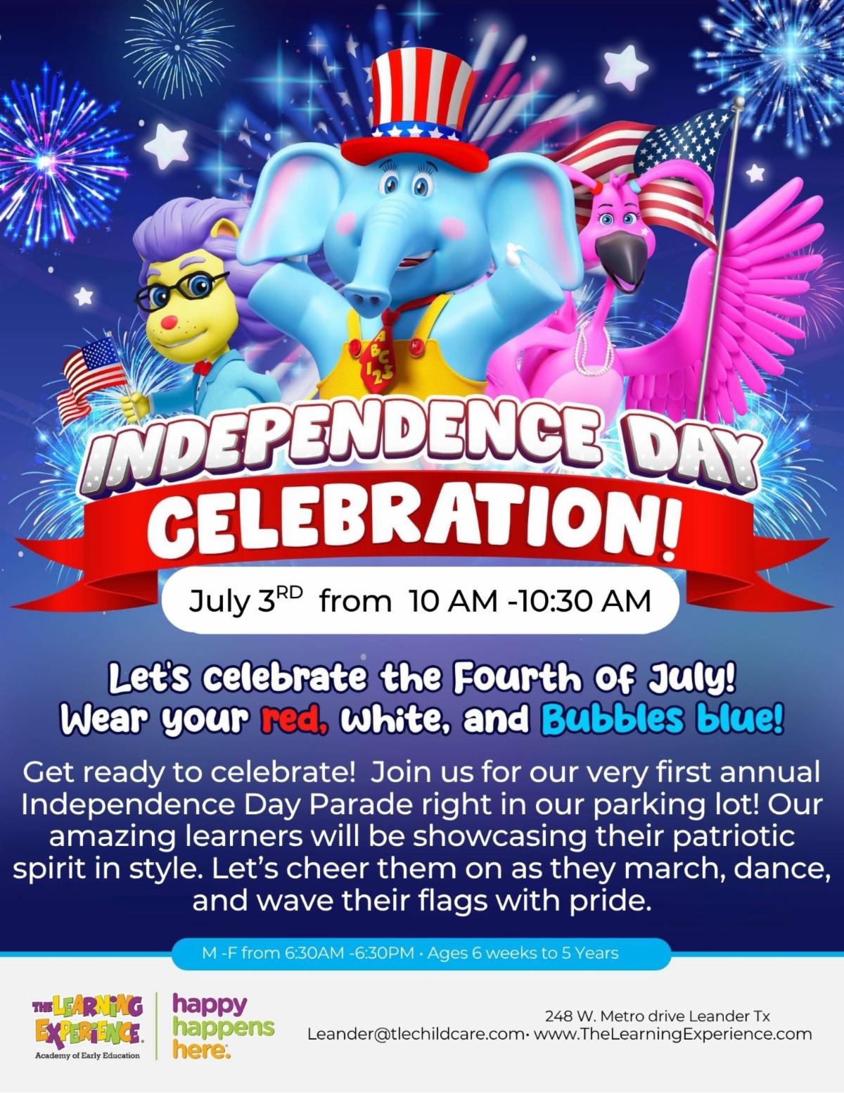 July 3rd - Indepence Day parade at 10 a.m.