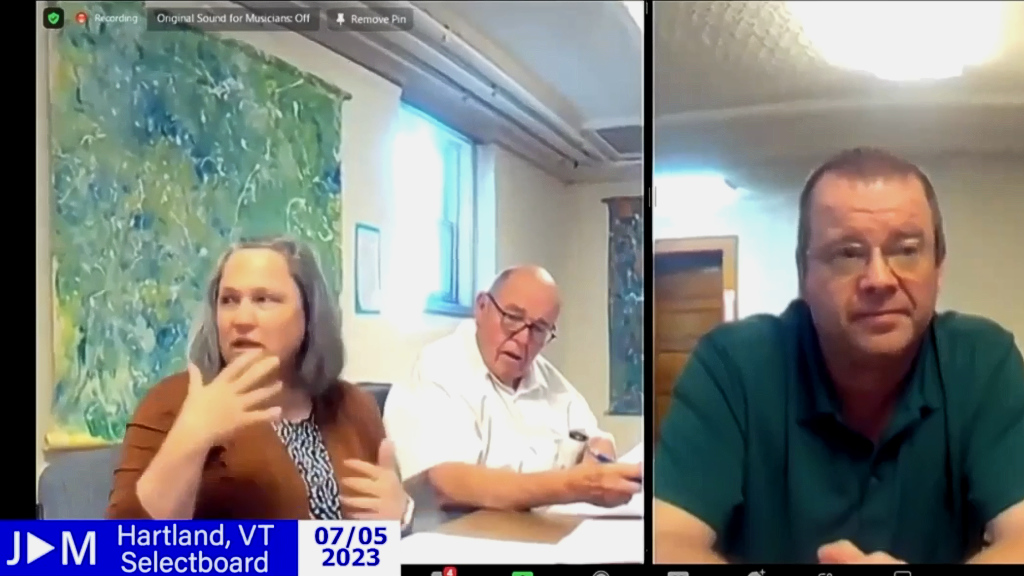 Find local government and school meetings for Hartford, Norwich, and Hartland, VT; Hanover, NH and Lebanon, NH (SAU88 only). Pictured: Hartland Selectboard 7/5/23