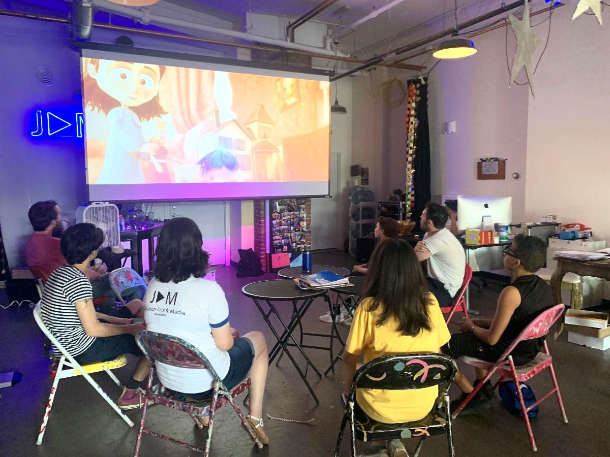 Animation is art made one frame at a time, 24 frames per second, to create the illusion of movement in a completely imagined world. It is detailed, slow work. Check out 8 seconds (do the math!) of magic created by JAM Campers last week as part of the Vermont-wide "Crowdsource Cinema" re-creation of Toy Story. Can you identify each young animator's unique style? Can you spot the claymation portion made on green screen? The week concluded with a visit from Joe Jacobs, CATV camp alum, Hanover High and USC School of Cinematic Arts grad now working for Insomniac Games, creator of Spider-Man 2, showing his original thesis animation film and introducing careers in animation.