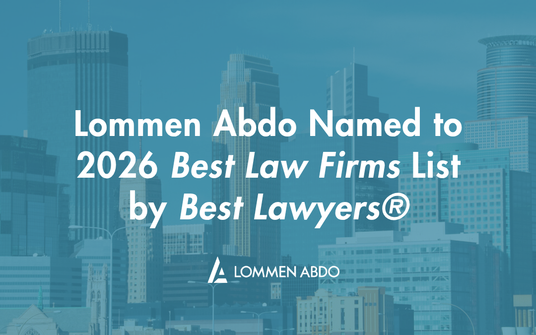 As we begin the new year, we’re proud to share the latest updates from Lommen Abdo. This winter edition of our quarterly newsletter highlights recent recognitions, including Best Law Firms honors, Jamie Johnson’s selection to Wisconsin Super Lawyers, and Michelle Kuhl’s appointment to the Minnesota Supreme Court Advisory Committee on Appellate Rules.