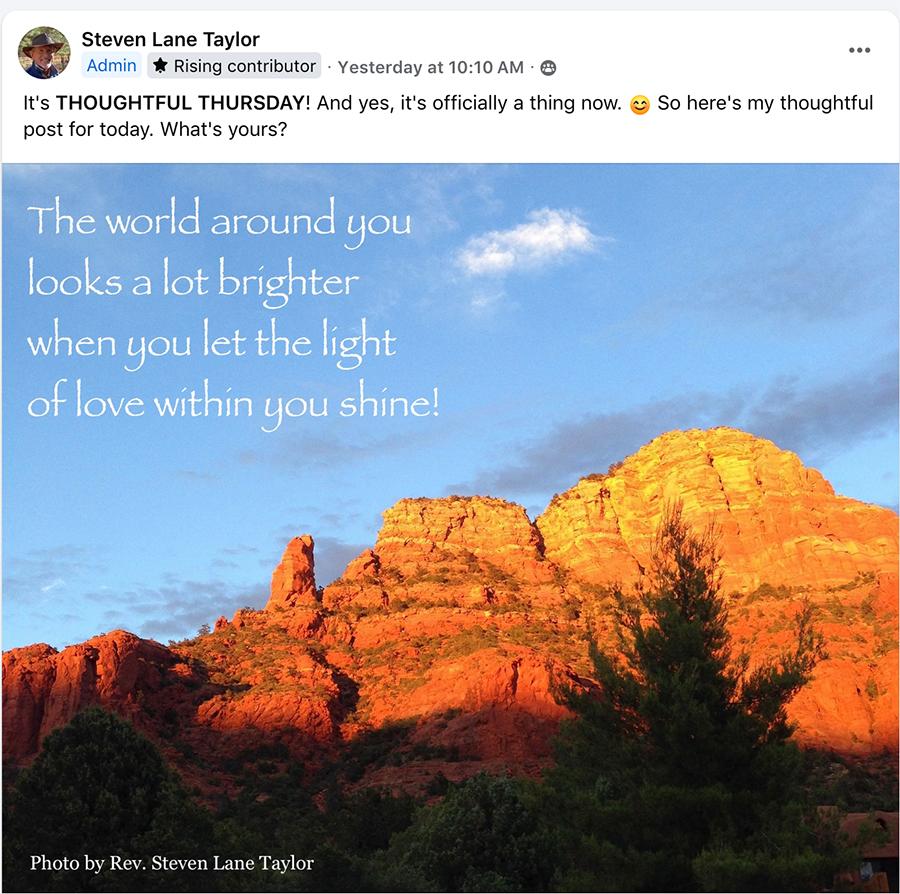 Join Rev. Steven Lane Taylor on Thursdays for Thoughtful Thursday, where members are encouraged to post "thoughtful posts"