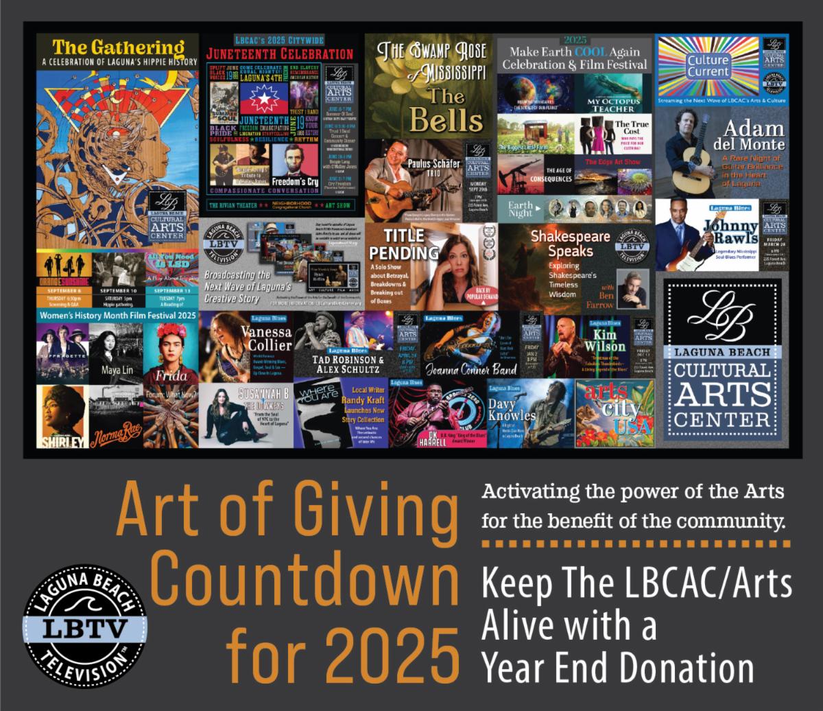 In 2025, the Laguna Beach Cultural Arts Center delivered 182 events, for the community to enjoy, including 16 filmed LBTV programs, marking the beginning of Laguna Beach TV.... And we did all of this with a volunteer team.