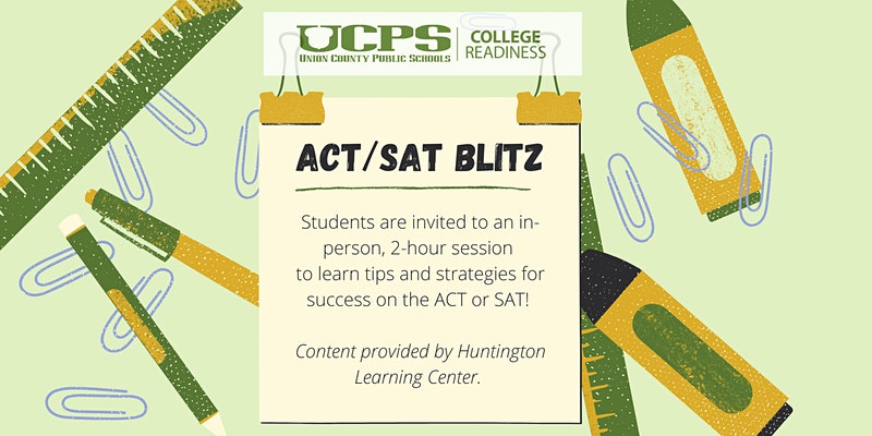 The UCPS College Readiness Department is hosting an event your student can't miss! The UCPS ACT/SAT Blitz for Students event will be from 10 a.m. - noon, this Saturday, Nov. 20 at Monroe High.