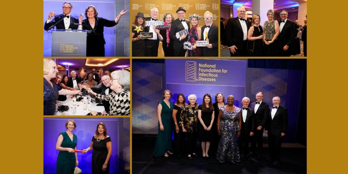 NFID paid tribute to 3 extraordinary leaders who are working to protect public health worldwide at the 2025 NFID Awards Gala and Silent Auction on October 16, 2025, in Washington, DC. NFID President Jeffery A. Goad, PharmD, MPH, thanked outgoing NFID CEO Marla Dalton, CAE, PE, who officially passed the baton to the new NFID CEO Rebecca Alvania, PhD, MA, MPH. NFID Immediate Past-President Patricia (Patsy) A. Stinchfield, RN, MS, CPNP, presented the 2025 awards: