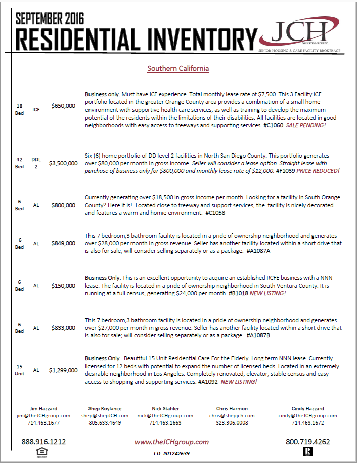 Business Only. Beautiful 15 Unit Residential Care For the Elderly. Long term NNN lease. Currently licensed for 15 beds with potential to expand the number of licensed beds. Located in an extremely desirable neighborhood in Los Angeles around Beverly and Fairfax. Beautiful facility that was completely renovated, elevator, stable census, private office and easy access to shopping, supporting services, Cedars-Sinai Medical Center and Kaiser on La Cienega Blvd. #A1092