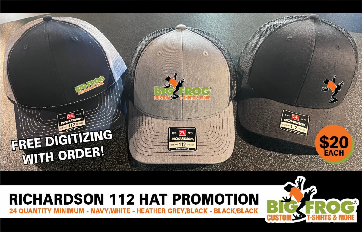 Embroidered polos at 5 or more and Amazing Richardson caps (2 dozen)